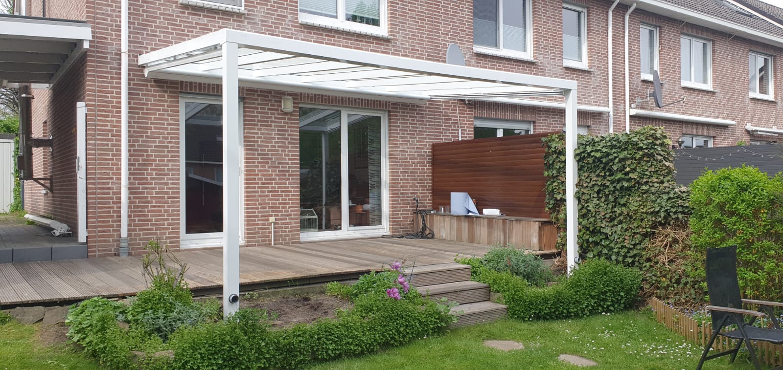 Eine Terrasse ist eine Bereicherung für das heimische Leben. Ein Blick in den Garten, eine Oase und Komfortzone für die ganze Familie. Genießen Sie die Zeit draußen. Ob Sonne oder Regen, ein Terrassendach sorgt für den nötigen Schutz. Wir sind der richtige Partner für Sie in Sachen: Überdachung, Wintergarten oder Carport. Wir helfen Ihnen, für Sie noch mehr Lebensqualität und für Ihre Immobilie, eine Wertsteigerung zu erreichen. Machen Sie noch mehr aus Ihrem Zuhause, mit uns an Ihrer Seite!